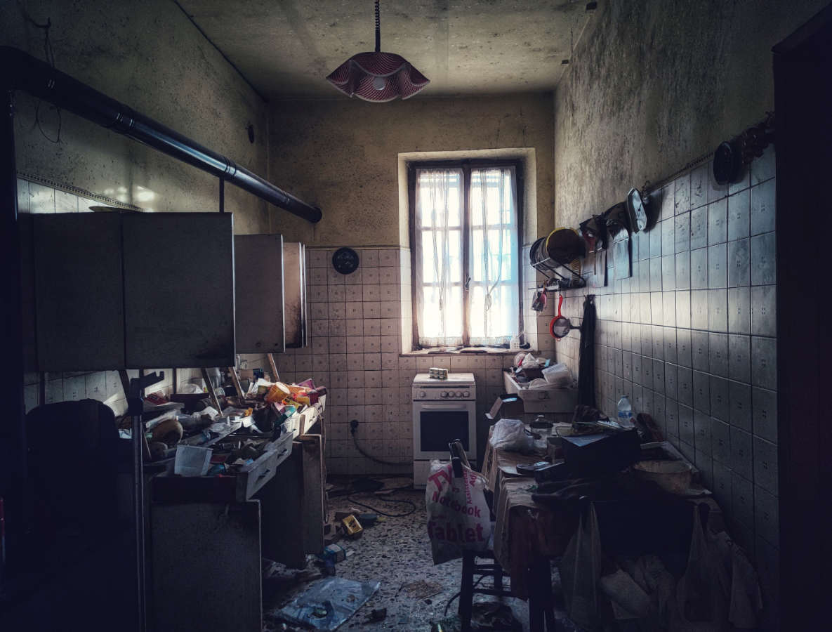 La cucina, un vero guazzabuglio di oggetti, era un riflesso del caos interiore degli abitanti. Piatti rotti e utensili sporchi erano sparsi ovunque, e un forte odore di muffa permeava l’aria. Le cose più semplici, come preparare un pasto caldo, erano diventate impossibili in un luogo che un tempo profumava di casa. Ogni angolo sembrava nascondere storie di frustrazione e di solitudine, facendo eco a un’umanità schiacciata dalla malattia e dalla paura.
