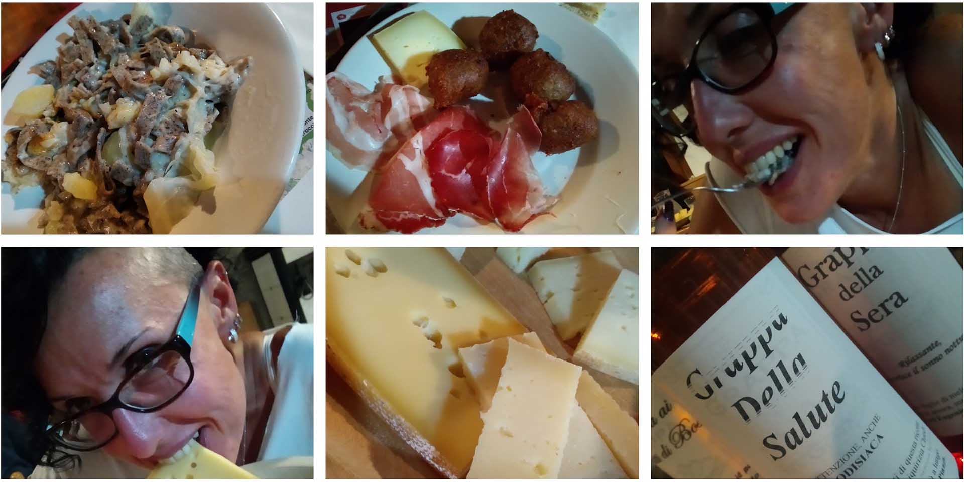 Risaliamo la salita… e ci dirigiamo verso il punto di ristoro dove la mia collega col compagno ci aspetta…saluti di rito… e a capofitto nei pizzoccheri e in una bella polentina… tutto accompagnato da del buon vino…